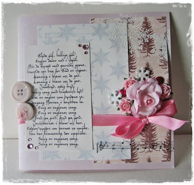 Her kommer to julekort fra meg. Jeg prøvde å holde meg til en fargetone, og har lekt meg med de fine julestemplene og papirene fra Inkido.