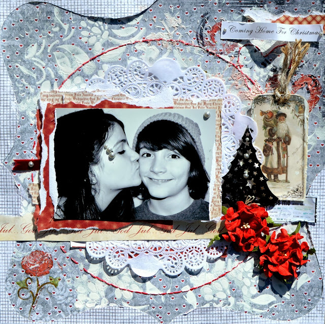 I like to use different colors for Christmas pages so this lovely grey paper with mini red hearts was a good one!